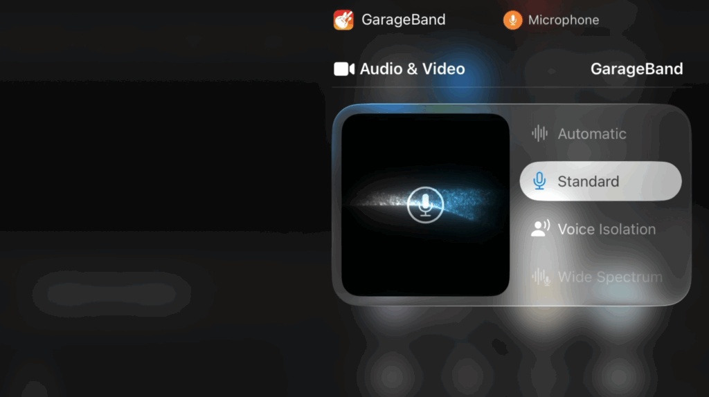 When GarageBand is open, you’ll now see a dedicated microphone input menu. From here, you can: